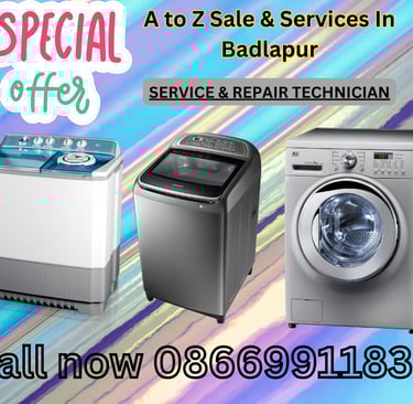 Repair ServiceWe are here to provide services and repairing for all types of Washing Machine like Semi Automatic Washing Machine, Fully Automatic Washing Machine, Top Loading Washing Machine, Front Loading Washing Machine Commercial Washing Machine in all over Badlapur Mumbai.We provide Services for all brands of Washing Machine Like LG Washing Machine, Samsung Washing Machine, Whirlpool Washing Machine, Godrej Washing Machine, Haier Washing Machine, Hitachi Washing Machine, Panasonic Washing Machine, Videocon Washing Machine, Kelvinator Washing Machine, IFB Washing Machine, Fisher And Paykel Washing Machine, Sansui Washing Machine, Bosch Washing Machine, Sharp Washing Machine, BPL Washing Machine, GEM Washing Machine, Siemens Washing Machine, Croma Washing Machine, GE Washing Machine in All over Badlapur Mumbai. Our Service Centre is Fully Private Home Appliance Service Centre.We provide Services and repairing on chargeable biases.We repair and Service only
